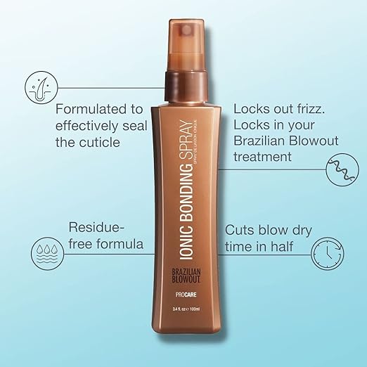 Ionic Bonding Spray is specially formulated to seal the cuticle, protect against heat and environmental damage, reduce blow-dry time and lock-out frizz. Color-safe, residue-free protective system.