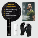 Our foam makes it a breeze! Spray, apply, and voila! Watch your gray fade into your dream color in just 25 minutes. Feel like keeping that salt-and-pepper charm? Just wash it out a bit early! Need darker coverage? Try our True Sons Dye Booster!