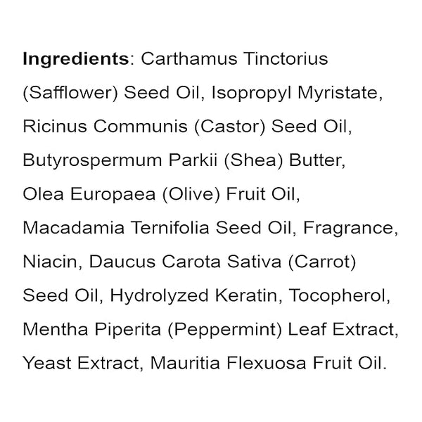 This intensive oil serum is perfect for those who regularly straighten, perm or heat style their hair. Packed with intensive hydration, it effectively penetrates to treat the scalp and each hair strand with nutrients, minerals and vitamins, bringing damaged or chemically processed hair back to life. Nutrient-rich Jamaican Black Castor Oil and organic Shea Butter help support healthy, shiny hair by strengthening and conditioning hair, increasing its resistance to breakage. Peppermint stimulates the scalp for an invigorating experience.