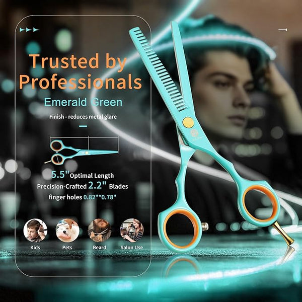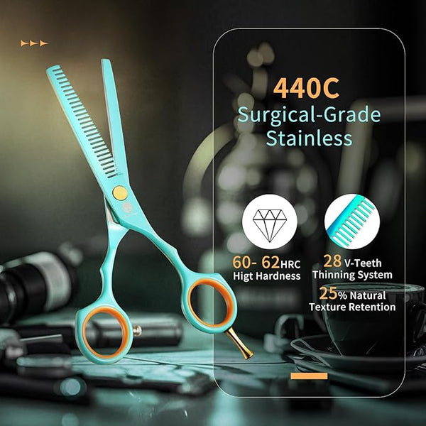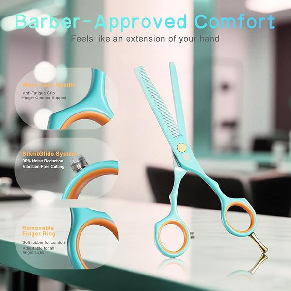 Convex edge and Hollow-ground make the professional haircut scissors evenly trim hair without damaging or splitting hair ends.