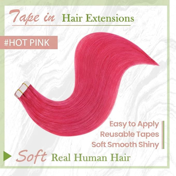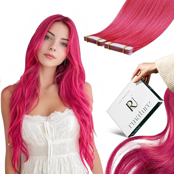 Product descriptionRunature Colored Hair Extensions Real Human HairBrighten up your life with gorgeous colors!RUNATURE Hot Pink Hair Extensions Human Hair for HighlightTape in Hair Extensions Human HairBy wearing small colored...