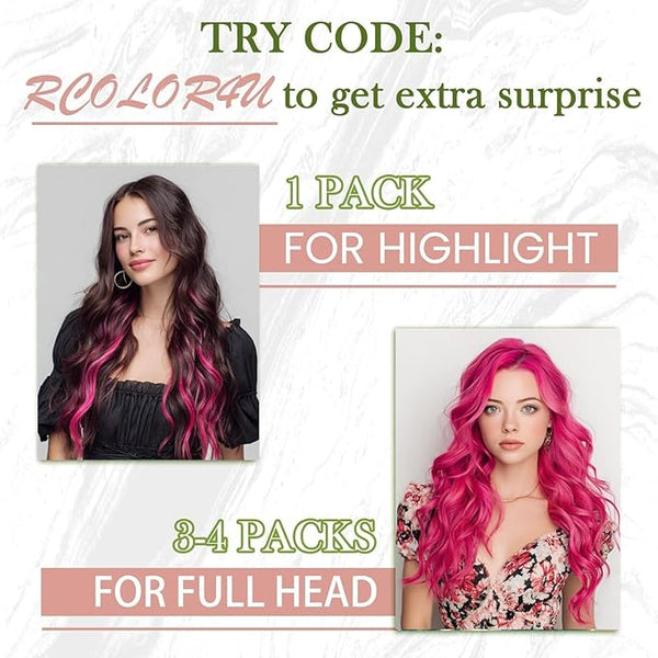 RUNATURE Hot Pink Hair Extensions Human Hair for Highlight