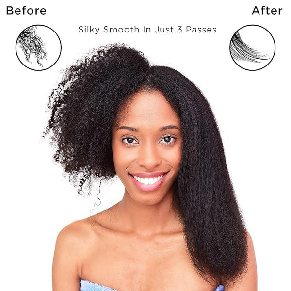 A. No. It does not replace the flat iron for bone straight hair styling.