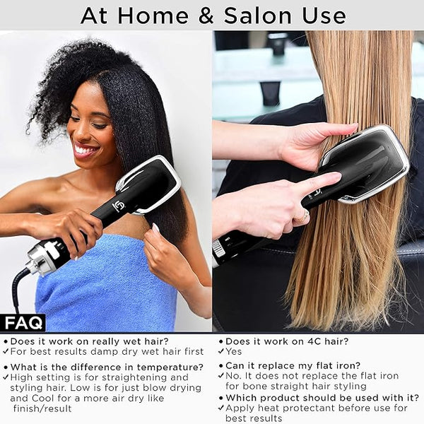 Stop wasting time fumbling with multiple hair tools make styling easy with this one step hot air brush & styler. This hair dryer brush is used as a styler to curl or straighten your hair, volumize your locks, or create the perfect blow out. This blow dryer brush works on wet & dry hair.