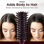 Providing a beneficial massage to the scalp, the nylon bristles combined with genuine natural boar bristles offer improved control and lift of hair for increased styling ability. Not only do they add body, but they also distribute natural hair oils and proteins throughout your hair. In doing so, the brush brings out the natural texture in your hair, adding health, vitality and sheen to every strand to deliver an all-over, silky luster.