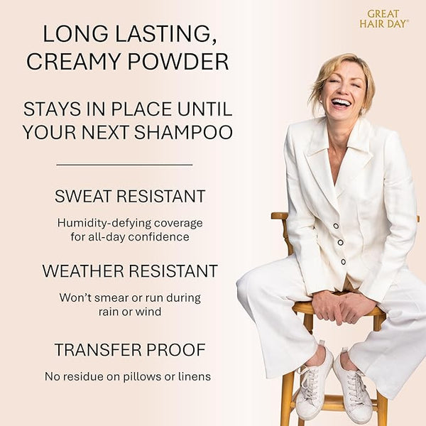 Product descriptionHow Does Great Hair Day Work?Can I use it on dyed or treated hair?Will it stay on all day?Is it easy to use?Can men use it too?Complete your look...
