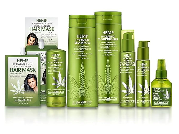 Introducing our HEMP HYDRATING Hair Care Collection...your solution for strong, radiant hair. Each of the products in this innovative collection features a synergistic combination of botanical ingredients.