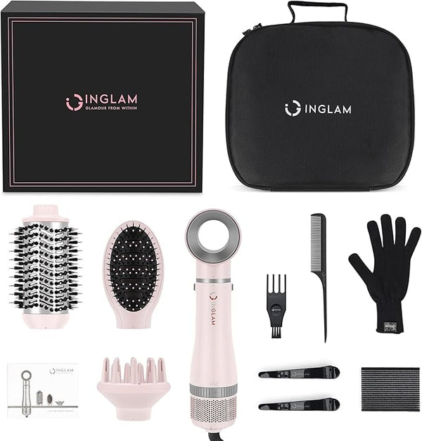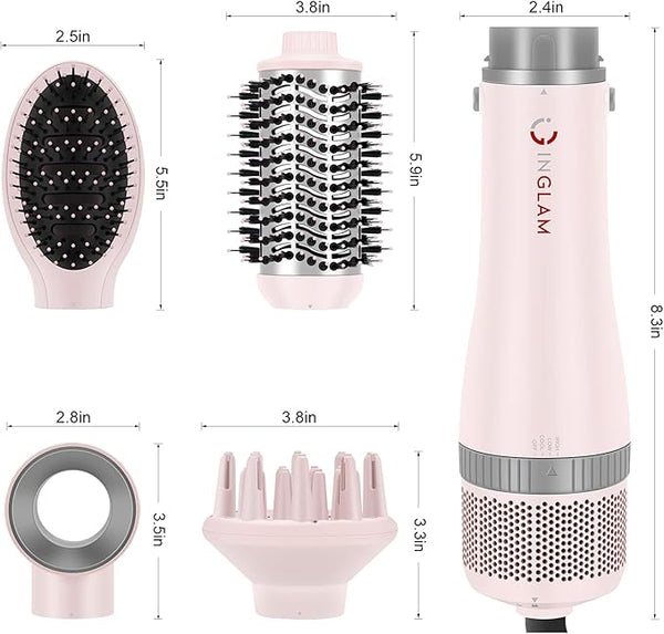 The IG INGLAM 4-in-1 blowout brush includes four attachments for unlimited styling options.