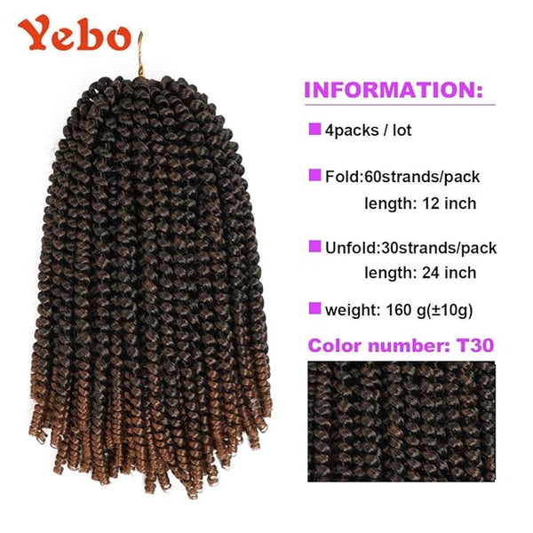Yebo spring twist hair 12inch comes in 4 colors,1B,T30,T27,T350. According to long-term survey data, these four colors are currently the most popular colors.