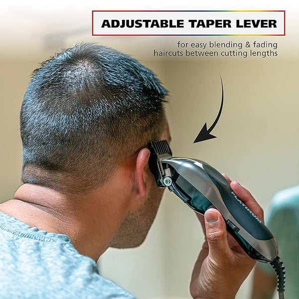 The included adjustable taper lever on the hair clipper allows for easy blending and fading between different hair lengths.
