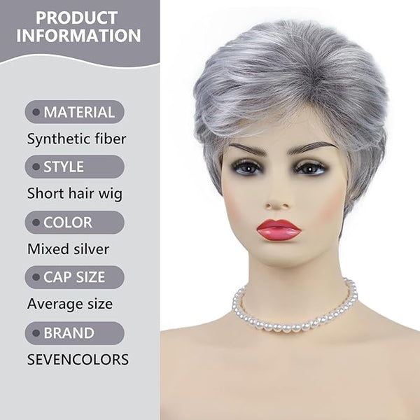 Short silver hair wig made of premium heat resistant synthetic fibers