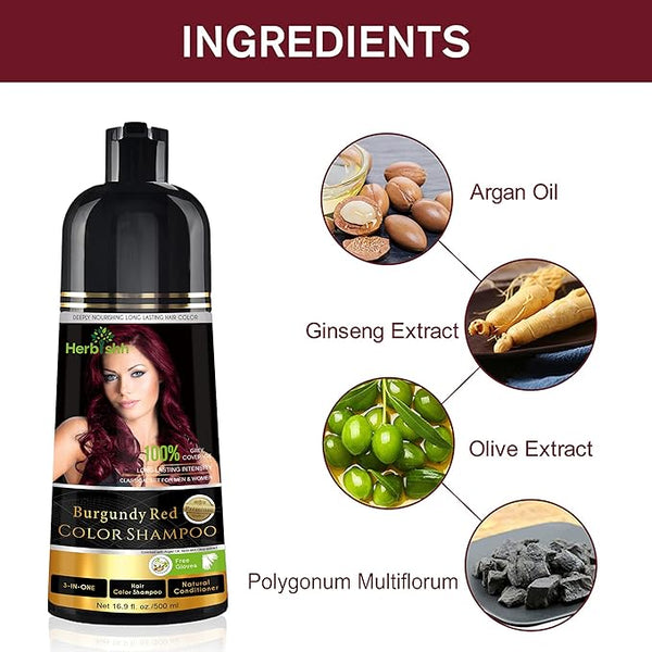 Our shampoo dye hair color contains active ingredients like Argan Oil to lock in moisture and prevent drying, Olive Oil to add softness and strength.