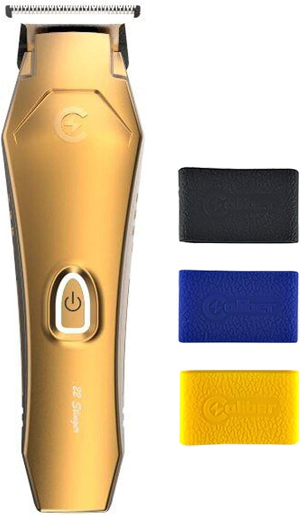 Complete your hair grooming kit with Caliber .22 Stinger Trimmer set with 3 Color Lids & Non-Slip Grips! This hair trimmer/clipper set from Caliber lets you achieve that cool, close-cut hair design with its first factory-modified Japanese steel DLC (Diamond-like carbon) coated blades! This enables easy zero-gap cutting and trimming for every barber and salon professional. This hair-cutting and grooming tool produces a precise and smooth cut that is ideal for lineups and edging without causing irritation so it's great for sensitive skin. Our .22 Stinger Trimmer is perfect for face/body hair, beard, mustache, sideburns, and behind the ear. It has a Superior Japanese-Precision Linear Magnetic motor that provides you 10,000+ SPM of consistent power so it's perfect for your professional and home use! In addition to that, it also gives you over 120 minutes of power with its 1500 mAh ICR lithium-ion battery. This hair-cutting and grooming tool boasts more than 5 years of a lifetime! Our Stinger Trimmer is integrated with over-charging and overusing protection technology so it's safe for everyone's use. It also has low noise and less vibration technology so you can cut hair without too much noise coming from your clipper or trimmer. The Caliber .22 Stinger Trimmer is made with the best and high-quality materials and is manufactured with high standards so it's safe, durable, and made to last for years! A great addition to your shaver, razor, scissors, shaving cream, beard oil, hair wax, and other professional hair care products, accessories, grooming kit, and hair-cutting tools! Level up your hair-cutting experience with Caliber .22 Stinger Trimmer! This set comes with 3 Color Lids and 3 Non-Slip Grips!
