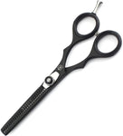 Our thinning scissors are perfect for adding texture and layers to your hair. The adhesive shock-absorber muffler design effectively decreases wear and tear, reduces noise caused by the colliding handles, increasing longevity and durability. The multipurpose nature of our scissors allows them to be used on all hair types and thickness, whether it be for long hair, beards, pets, and they are great for all ages and expertise.