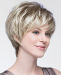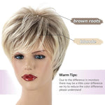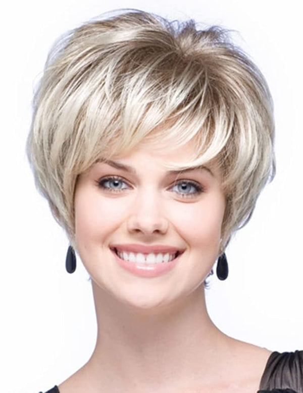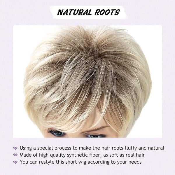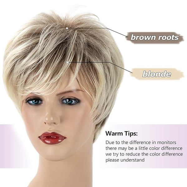 This short mixed blonde wig with bangs is suitable for any face shape,making you look sweeter and younger.You can trim the bangs according to your preferences.The short blonde pixie cut wig will always be classic.