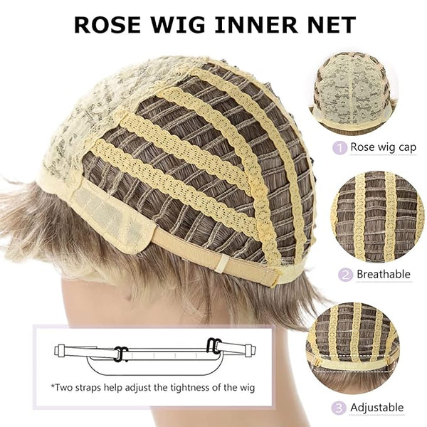 The wig cap of this blonde mixed brown wig for women is designed professionally.Elastic and breathable,there are 2 straps at the bottom of the wig,which can be intertwined to a fixed position to suit different head sizes.