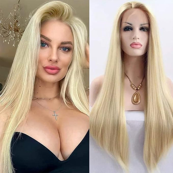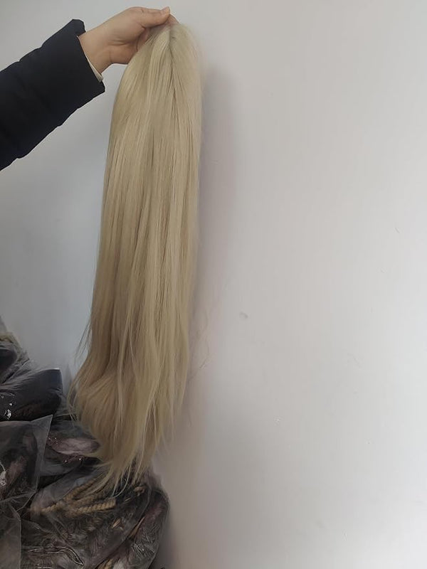 Product descriptionWig Wearing StepsAdvantages:1.Stretch the long Blonde straight Nature Wave wig net with your hands,put it to your neck from your forehead. 2.Put the whipstitch side downwards,pinch the other side...