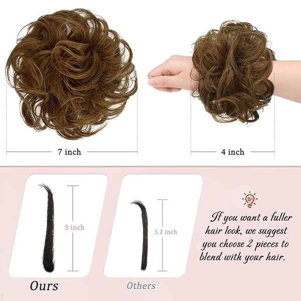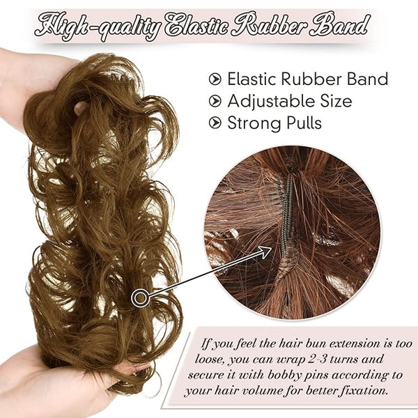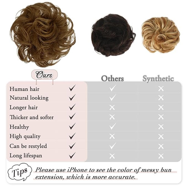 RUWISS messy bun hair piece is made of 100% real human hair. With natural textured hues, more longer soft hair, perfect curl shape, comfy elastic band, human hair bun extension perfectly blends with your original hair.