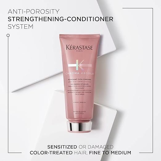 The Chroma Absolu haircare range features restoring acid formulas to care for all types of color treated hair. This fully customizable color care range repairs damage, reduces frizz, and prevents color fading for stronger, shinier and healthier hair.