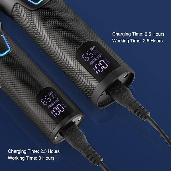 Cordless hair clipper is equipped with a rechargeable battery, that gives you 2.5 hours of non-stop operational capacity when fully charged.