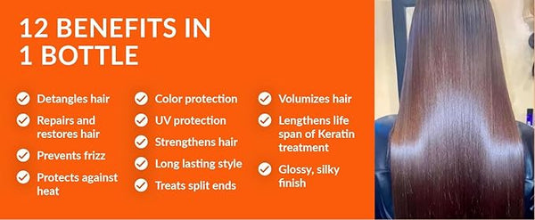 Smooths Hair, Helps to smooth and manage frizz.Repairs Dry, Damaged Hair: Provides nourishment to restore damaged strands.Adds Shine: Leaves hair looking silky and shiny,Softens Hair: Leaves hair feeling soft and smooth.Strengthens Hair: hydrolyzed keratin helps to strengthen and protect the hair.