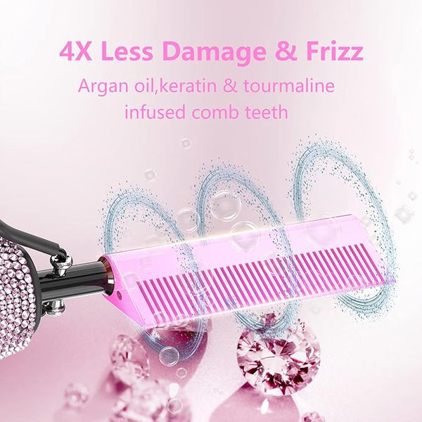 hair straightening comb infused with keratin ceramic glaze release negative ions when heated, and these negative ions lock in moisture and effectively smooth frizz for healthier, softer hair.
