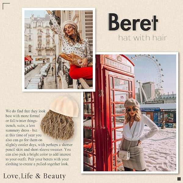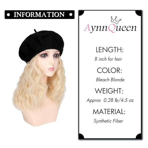 AynnQueen Beret Hat with Hair