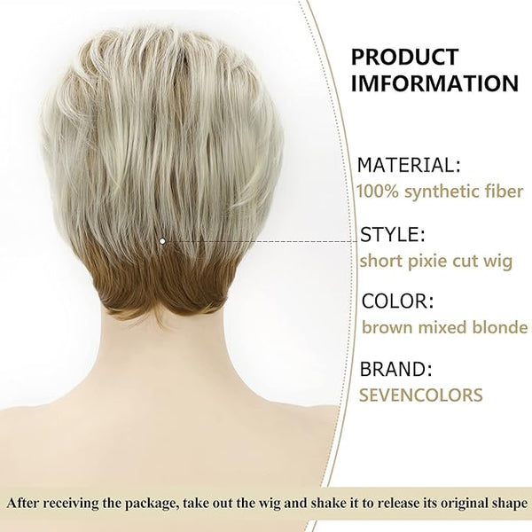 Product descriptionProduct Information - Short Layered Blonde Pixie Cut Wigs with BangsFind Beauty from Layered Short Blonde Hair Wigs:Warm Tips About Colors:1.Indoor and outdoor light is different,the sensitivity is also...