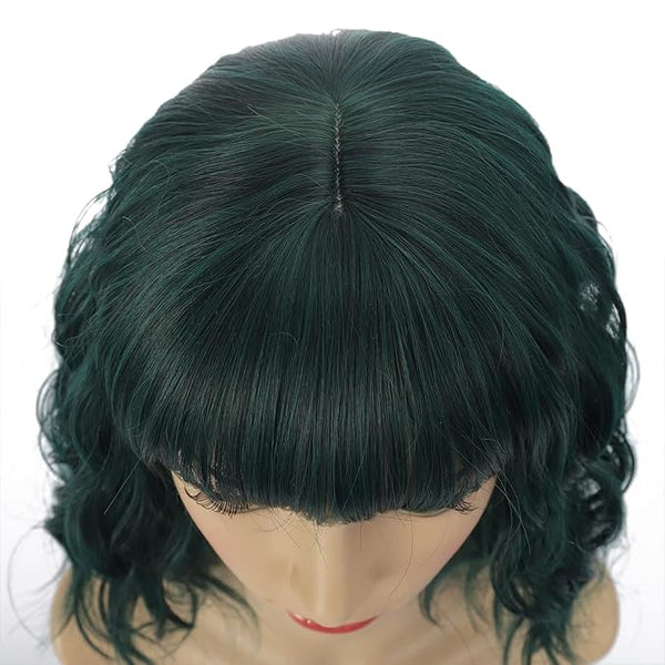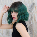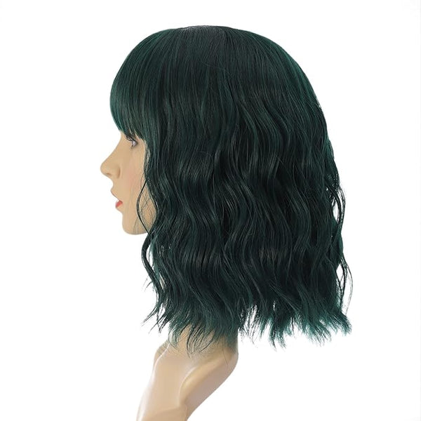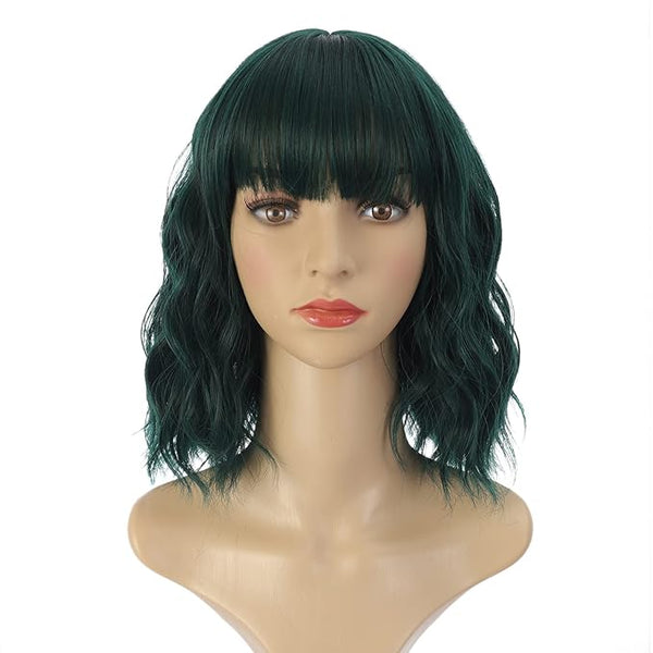 Women Short Wavy Curly Hair Bob Wigs With Bangs