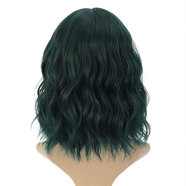 Women Short Wavy Wigs With Bangs Short Curly Bob Wigs