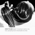 Apply 1 -2 pumps to wet or dry hair, spreading from mid shaft to ends.