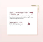 The at-home keratin hair oil includes a heat-activated defense that forms a protective barrier on the hair, essential for protection during styling.