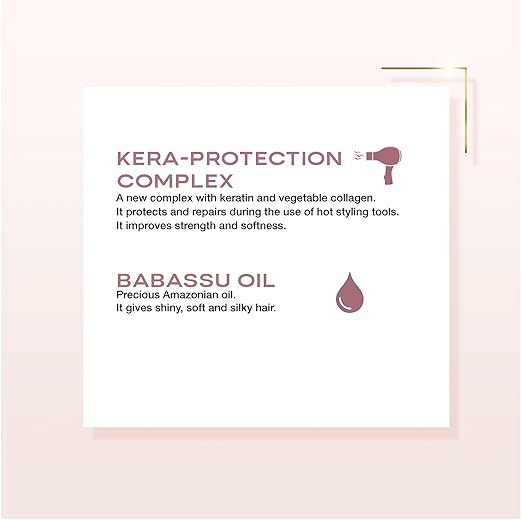 A complex with keratin and collagen. It protects, repairs during the use of hot styling tools and improves strength and softness.