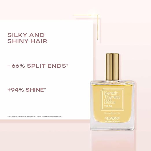 A silk-effect keratin hair oil that adds brilliant shine and reduces split ends. The incredible hair care product leaves hair silky, visibly shiny, and is mineral oil and paraffin free. It helps maintain and prolong the cosmetic results obtained with professional keratin smoothing treatments.