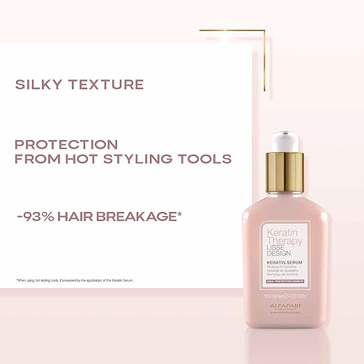 The serum helps maintain and prolong the cosmetic results obtained with professional keratin smoothing treatments. It has a silky texture and provides protected and velvety hair. The hair serum adds brilliant shine and reduces hair breakage. It leaves hair silky, visibly shiny, and is mineral oil and paraffin free.