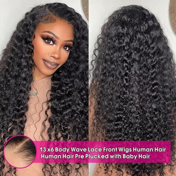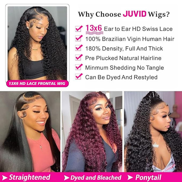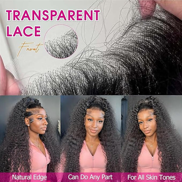 13x6 Lace Front Wigs Human Hair Deep Curly HD Transparent Lace Frontal Wig
