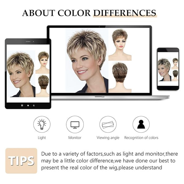 SEVENCOLORS Mixed Blonde Pixie Cut Wigs Short Hair Wig for Women
