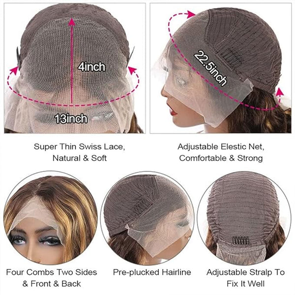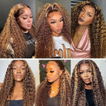 13x4 Deep Curly Lace Front Wig Highlight Ombre Deep HD Transparent Lace Front Wig Human Hair