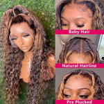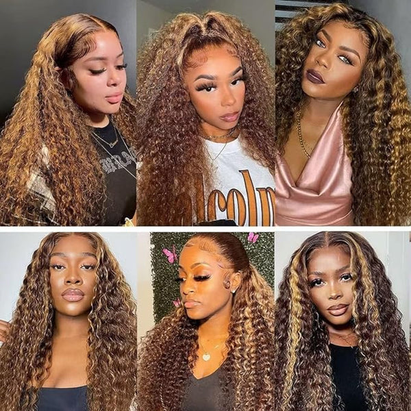 4/27 13x4 Deep Curly Lace Front Wig Highlight Ombre Deep HD Transparent Lace Front Wig Human Hair for Black Women