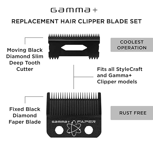 Specialized Japanese Stainless Steel blade is perfectly balanced with superior sharpness. The fixed Faper blade is a fusion of a Fade and Taper blade. The moving Slim Deep Tooth blade is lighter weight for faster movement with longer teeth for more efficient cutting.