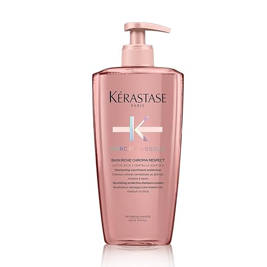 Each are designed specifically to address two different hair densities. Bain Chroma Respect features a lightweight formula best used on fine to medium hair thicknesses. Bain Riche Chroma Respect is designed for medium to thick hair densities.