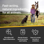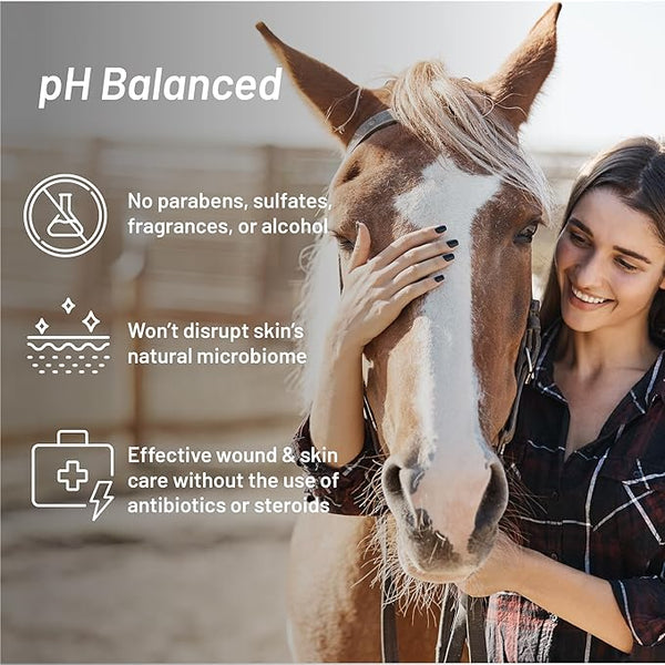 It will quickly soothe itchy, irritated skin and treat rain rot, sweet itch, and other fungal or bacterial skin conditions. We recommend using in conjunction with a Silver Honey Rapid Wound Repair or Rapid Skin Relief topical spray or ointment.