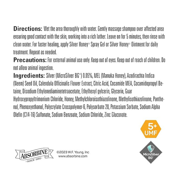 We recommend using the shampoo as a first step to provide soothing relief to itchy skin and clearing of any debris, and then following up with a Silver Honey Hot Spot & Wound Care spray gel or ointment directly on the affected area.