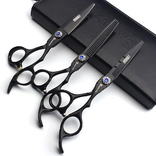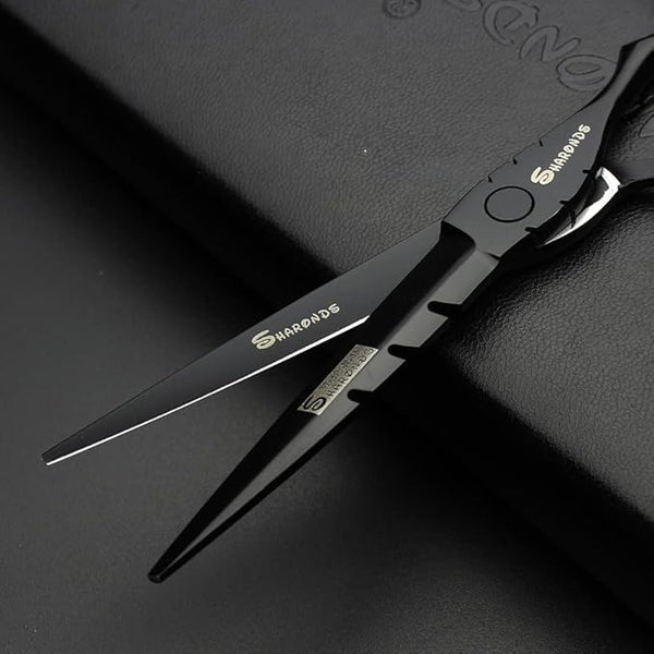 The all black scissors look very stylish, with a V-tooth design that is very sharp.