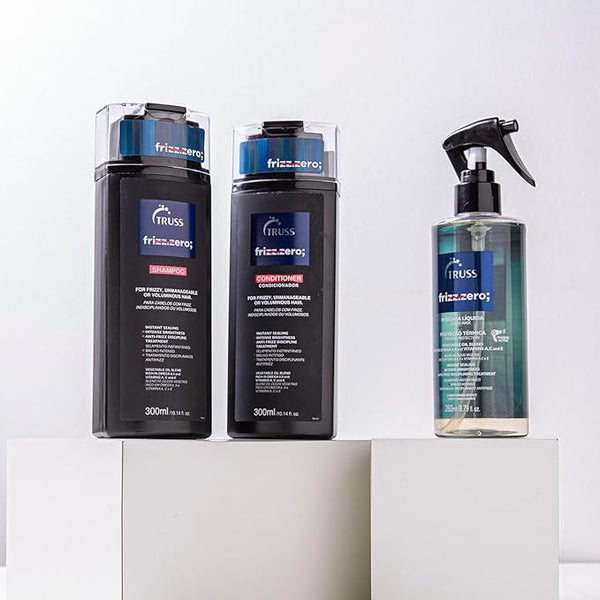 Product descriptionTRUSS Frizz ZeroShop Your TRUSS Hair Care RoutineThis is a modal window.Frizz Zero ConditionerFrizz Zero ShampooFrizz Zero LiquidAnti-Frizz OilHeat Treatment Spray