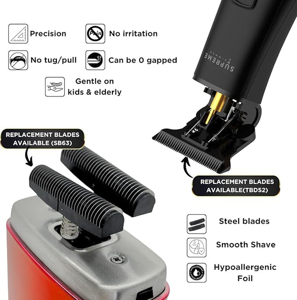 Product descriptionvideoThe World's Trimmer CompanyUnboxing STF602 Crunch Foil ShaverThe Start of Everything!Unboxing T-Shaper by Supreme TrimmervideovideovideovideoAre there replacement blades?Is it possible to use the machines while they're charging?Are they suitable...