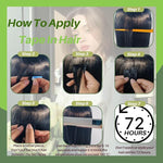 Avoid applying oily hair care products near the tapes. Do not wash your hair for at least 48 hours after applying the extensions. When styling, avoid using high temperatures near the adhesive tapes. Be gentle when brushing or styling your hair.