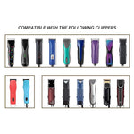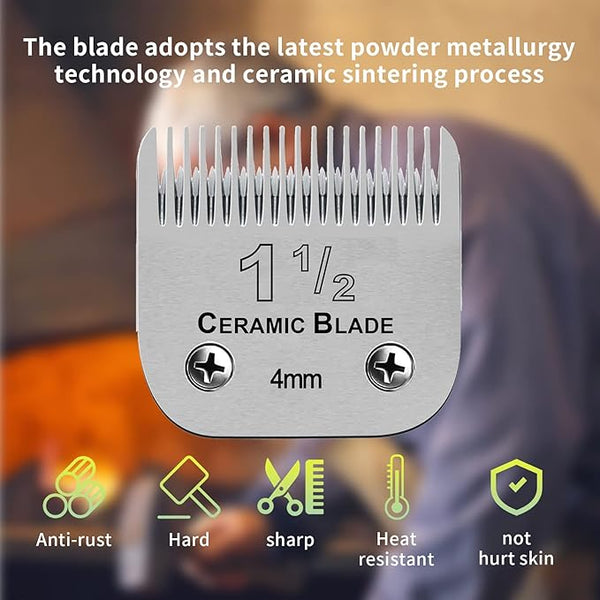 Comb blade Stainless-steel,Shear blade Titanium-coating Ceramic,Blade sharp and strong hardness, water will not rust. It is more heat stay up to 75% cooler than steel and has less noise when used,stay sharper longe
