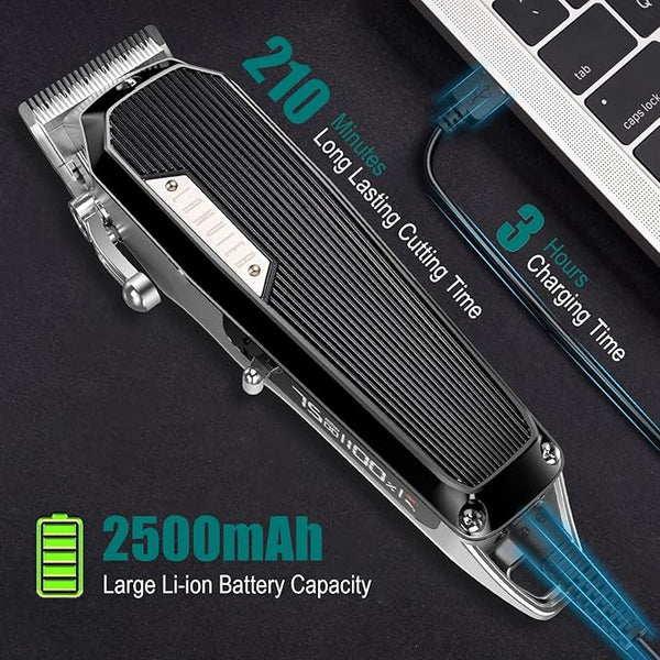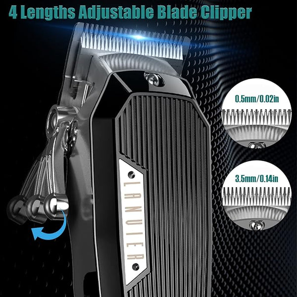 The Lanvier professional hair clipper for men is a full metal unibody cutting tool. Zinc alloy die-casting for upper cover (color painting), aluminum die-casting for lower cover (original color).