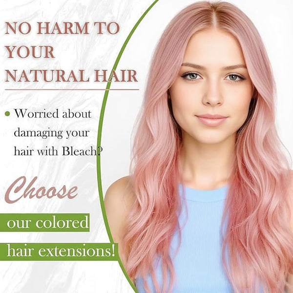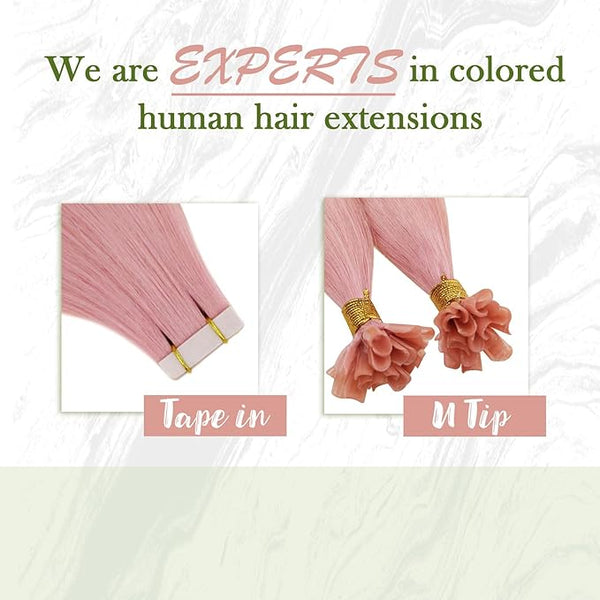 RUNATURE Pink Hair Extensions Human Hair for Highlight
